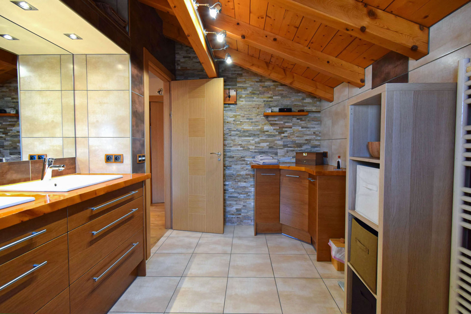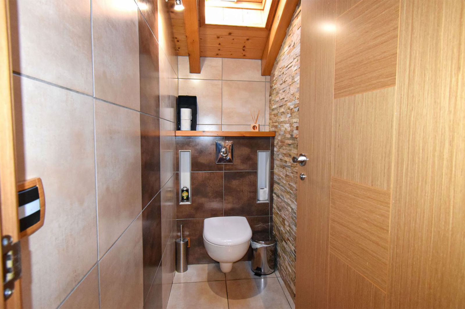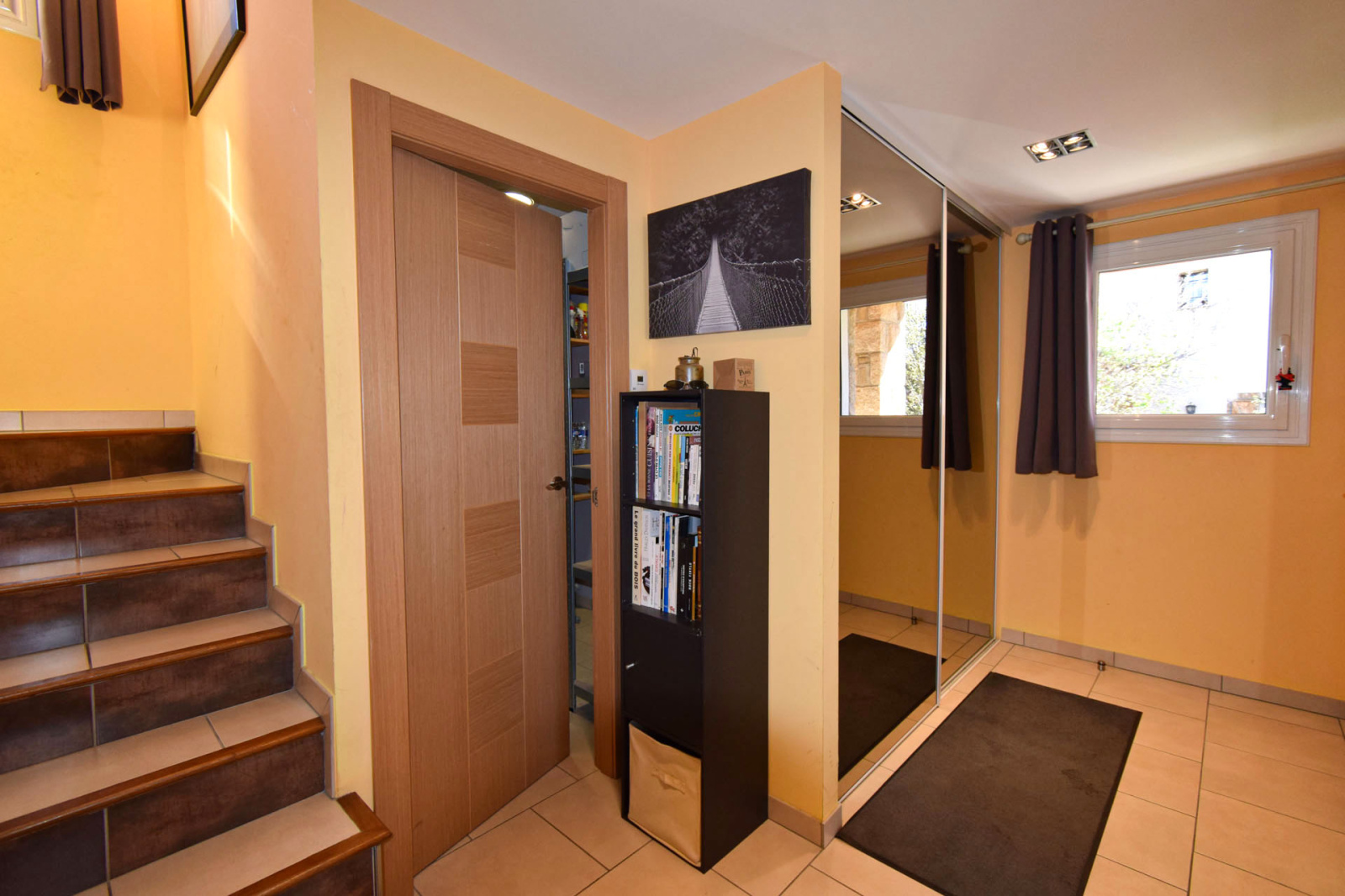 Au rez-de-chaussée, vous accédez du grand porche extérieur à un hall d’entrée avec grand placard ainsi que d’un local technique, un vaste garage de 38m2 pré-aménagé pour offrir éventuellement de multiples possibilités, idéal pour créer un appartement supplémentaire, un espace de loisirs ou un atelier selon vos besoins.