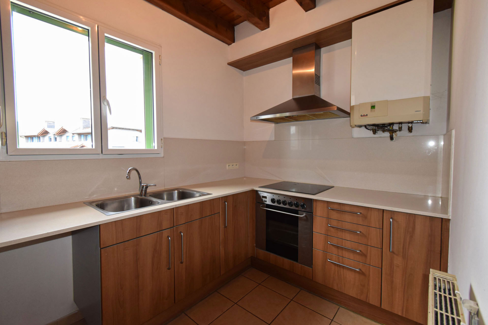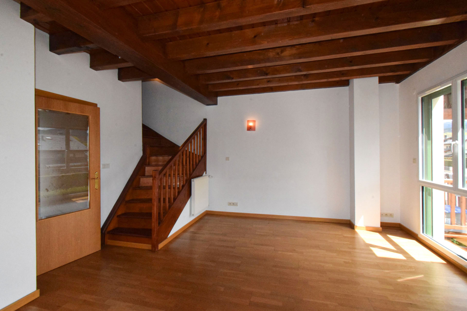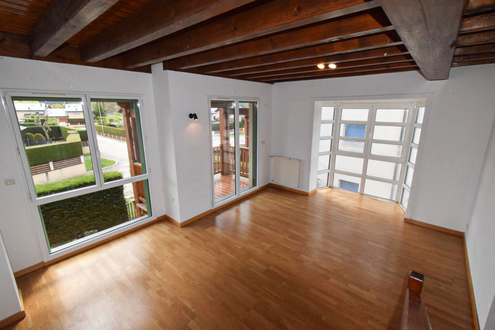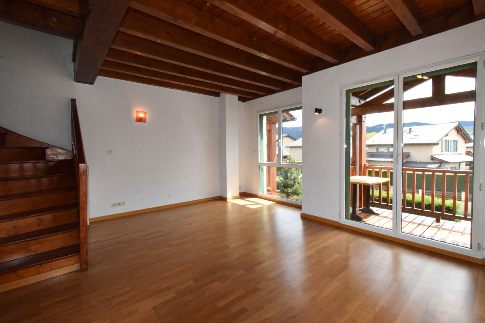 Quartier résidentiel "les Planes de Surroca", appartement moderne en 1er étage, de type duplex, comprenant hall d'entrée avec placard et lavabo/wc de courtoisie, cuisine séparée, salle de séjour superbement exposée, très lumineuse, bow-windows à l'ouest et terrasse couverte de 5m2 plein sud; A l'étage, dégagement sur 3 chambres, 1 double, 2 simples, salle de bains avec wc; Chauffage central et eau chaude par chaudière gaz individuelle; Garage privatif type box de 17m2+mezzanine et stationnement extérieur libre. Proche centre village avec toutes commodités.