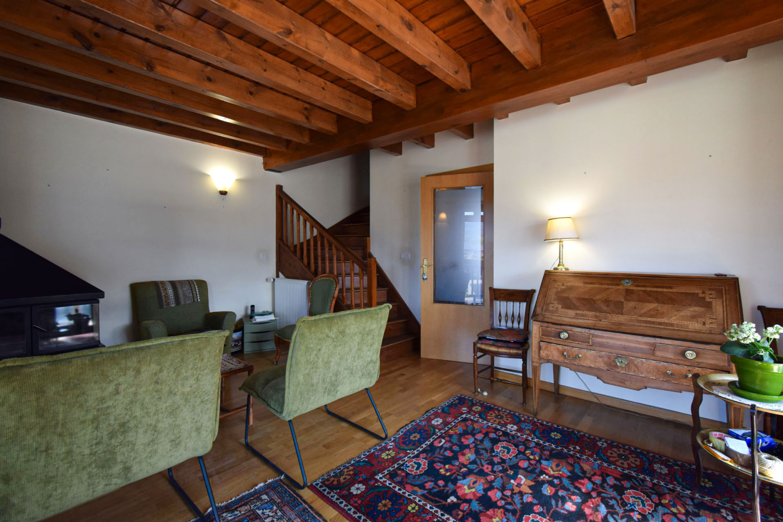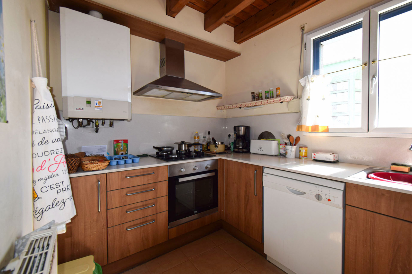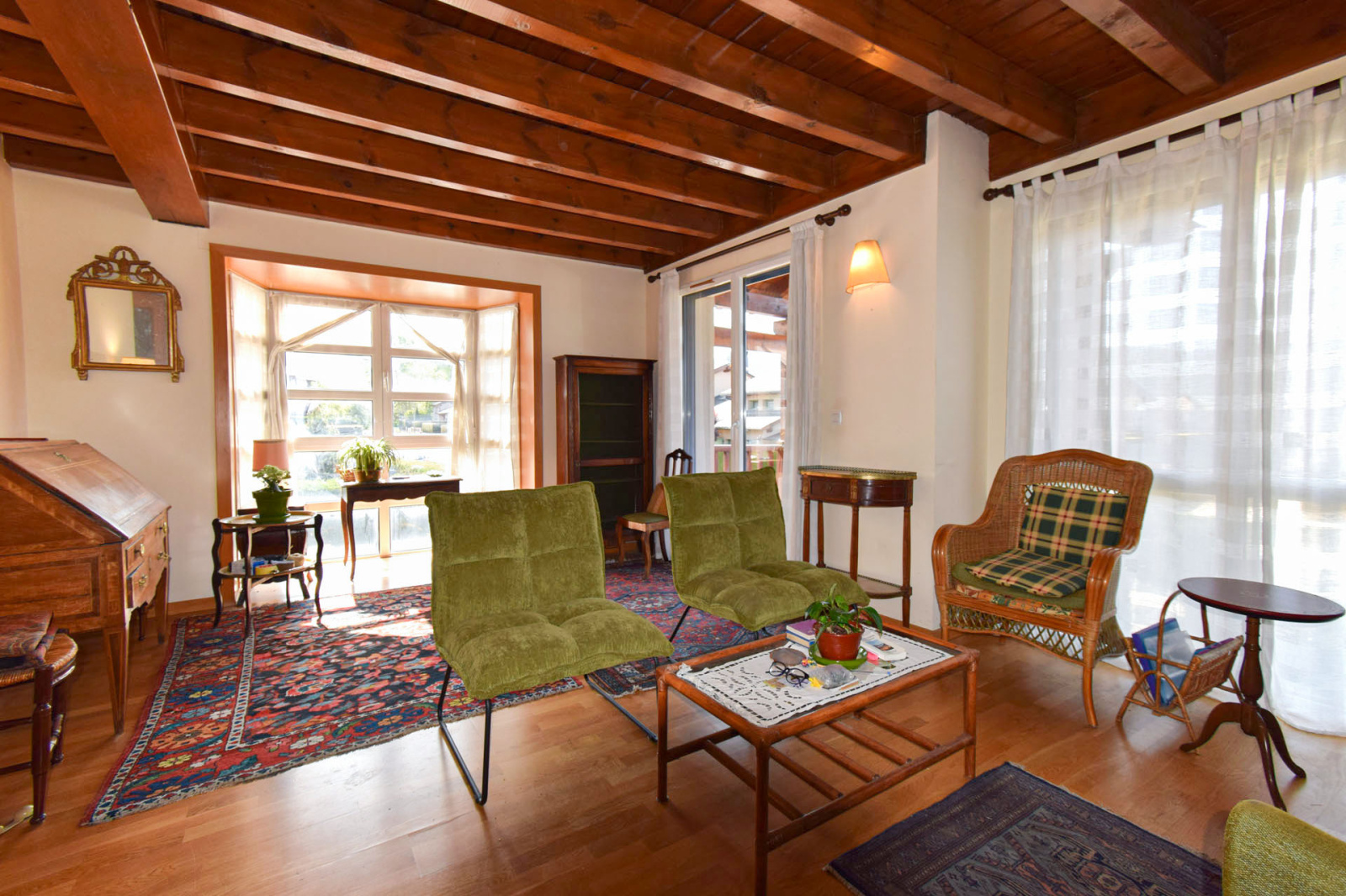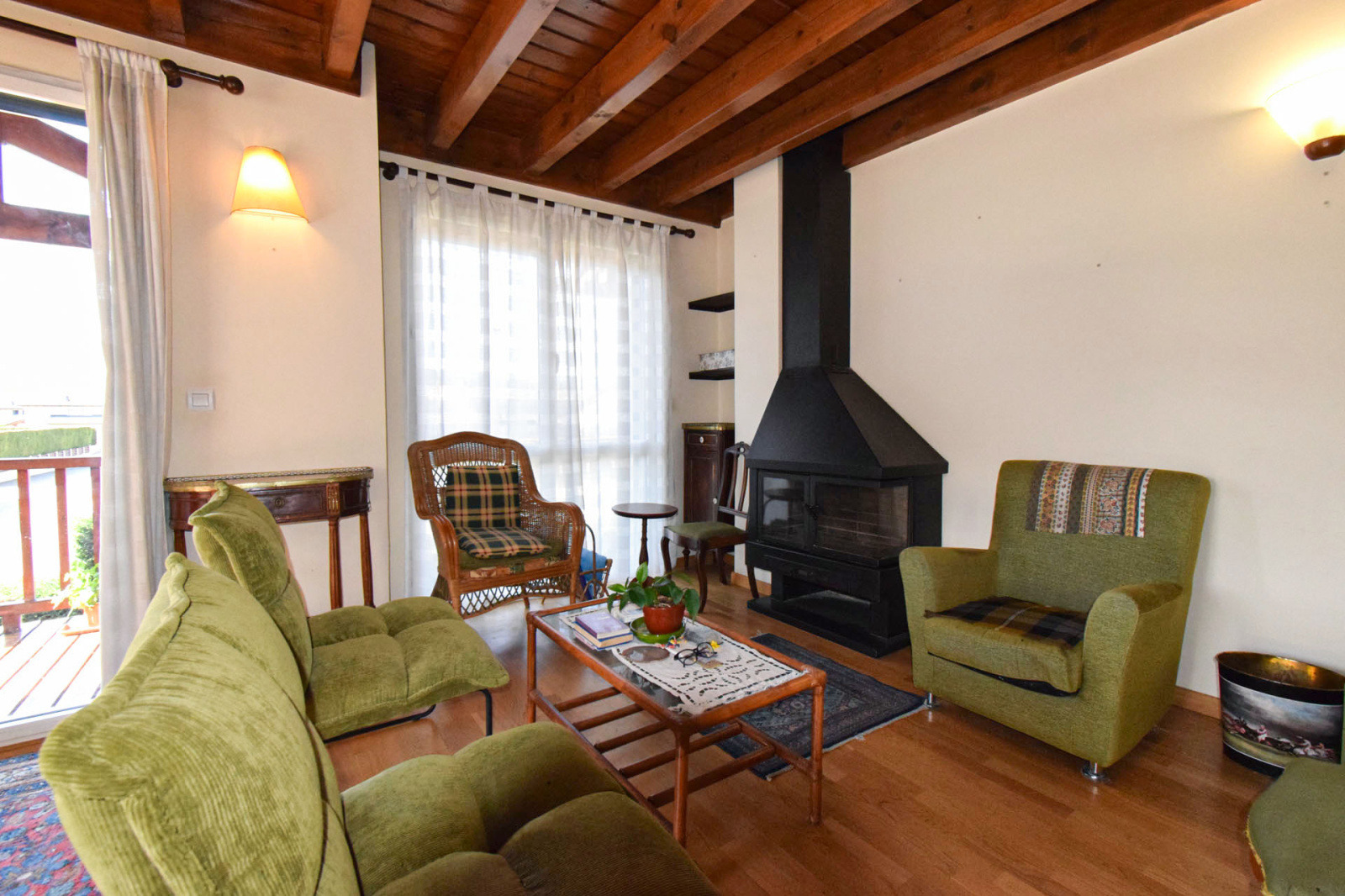 Quartier résidentiel "les Planes de Surroca", appartement moderne en 1er étage, de type duplex, comprenant hall d'entrée avec placard et lavabo/wc de courtoisie, cuisine séparée équipée, salle de séjour superbement exposée, très lumineuse, bow-windows à l'est et terrasse couverte de 5m2 plein sud, cheminée insert bois; A l'étage, dégagement sur 3 chambres, 1 double, 2 simples, salle de bains avec wc; Chauffage central et eau chaude par chaudière gaz individuelle; Garage privatif type box de 17m2 et stationnement libre. Proche centre village avec toutes commodités à pied.Toujours bien entretenu, belle opportunité, vendu sans mobilier.