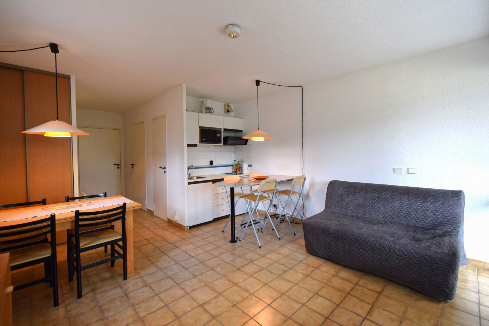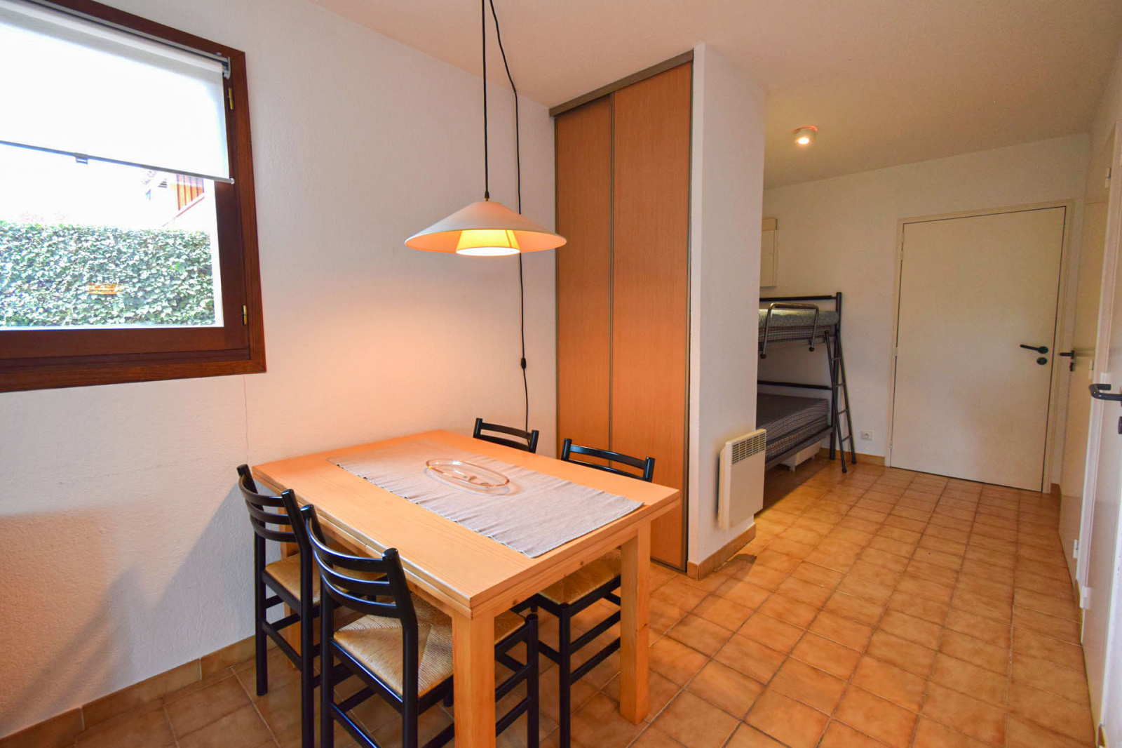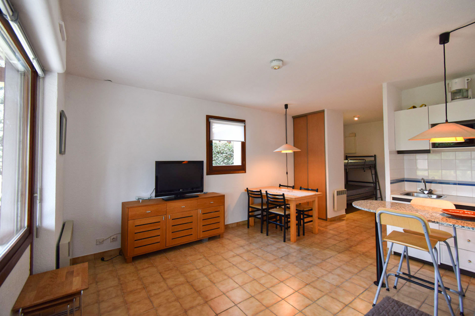 Hameau de Caldégas, studio cabine de 29m2 avec terrasse couverte de 16m2 en expo ouest; Entrée sur 2 lits superposés en 90cm, salle de bains compléte, salle de séjour avec kitchenette, canapé lit, 2 placards (dont 1 possible pour lave-linge), placard à ski dans local commun, 1 stationnement véhicule privatif parking extérieur; Petite résidence de 23 appartements dont nous assurons le syndic, sans nuisances.