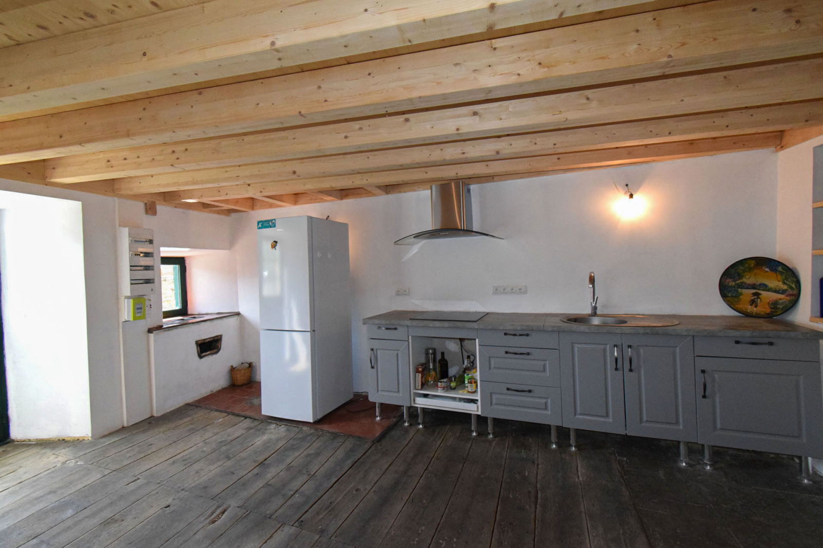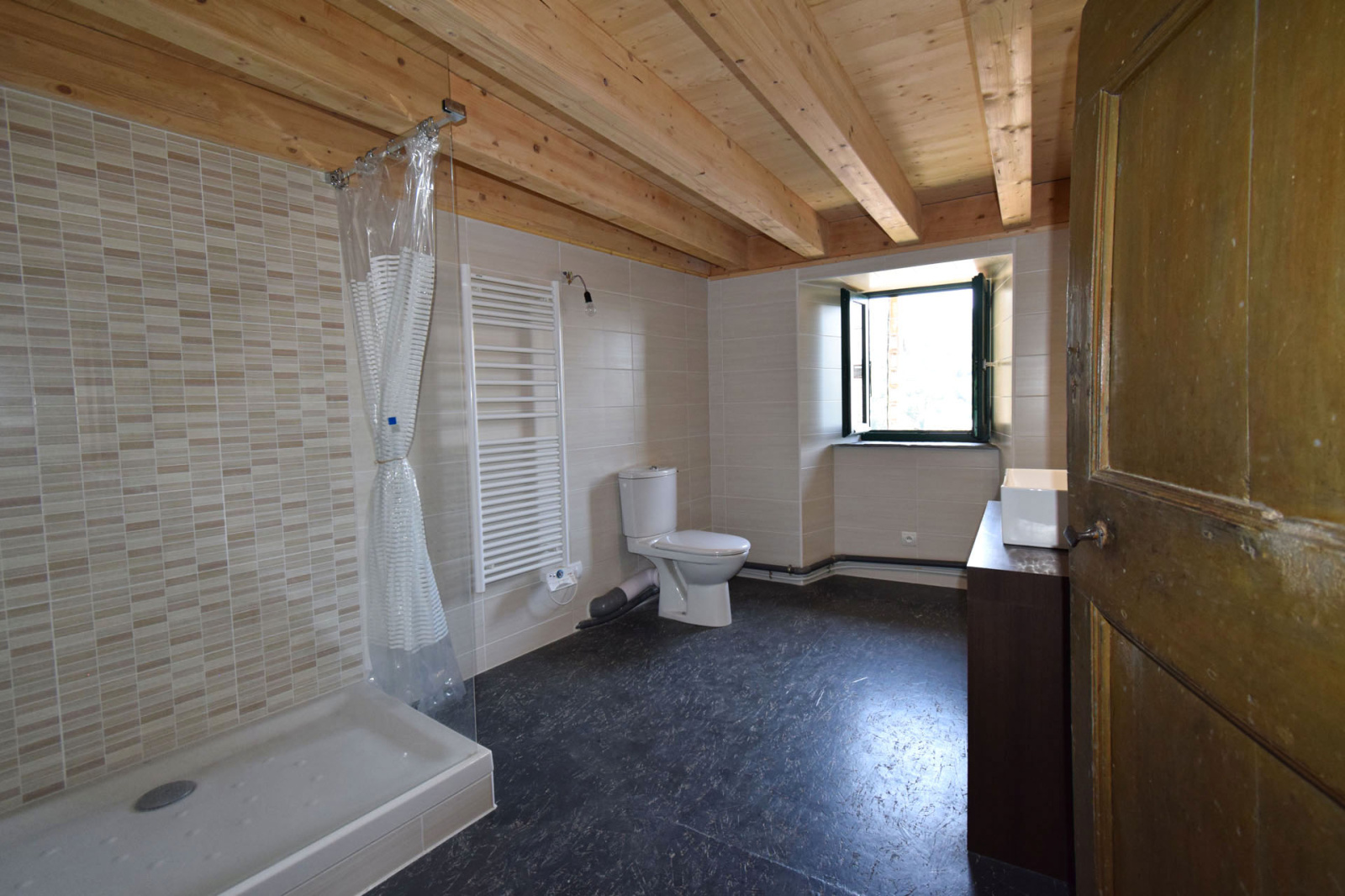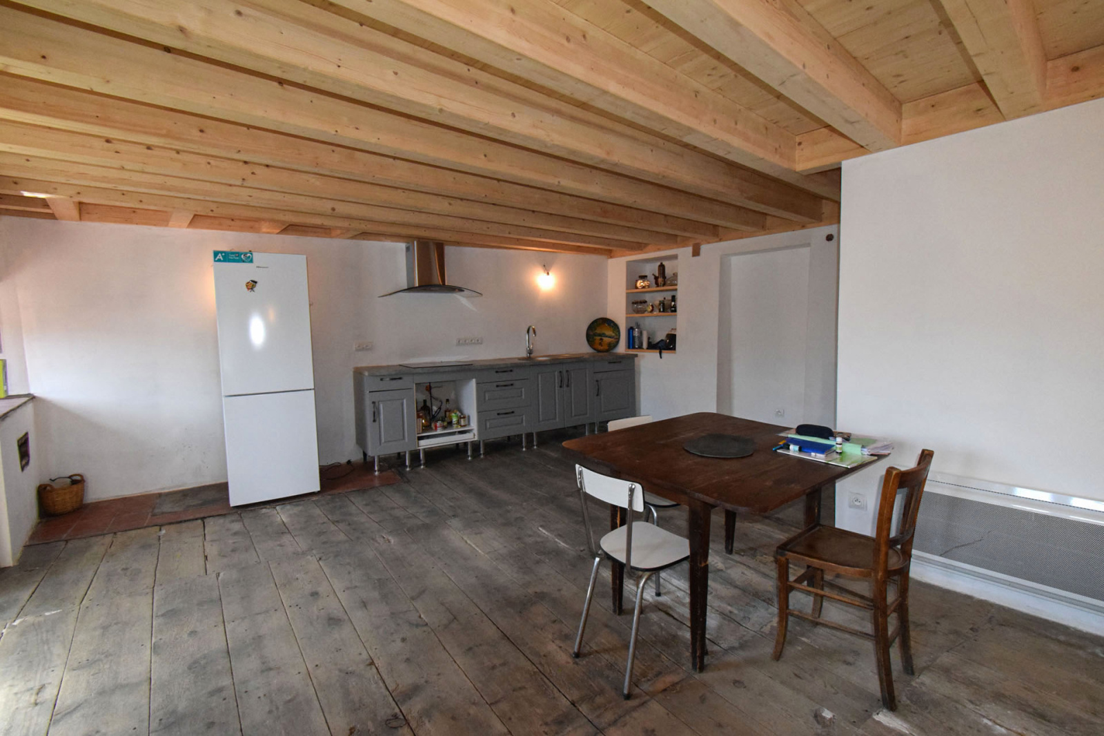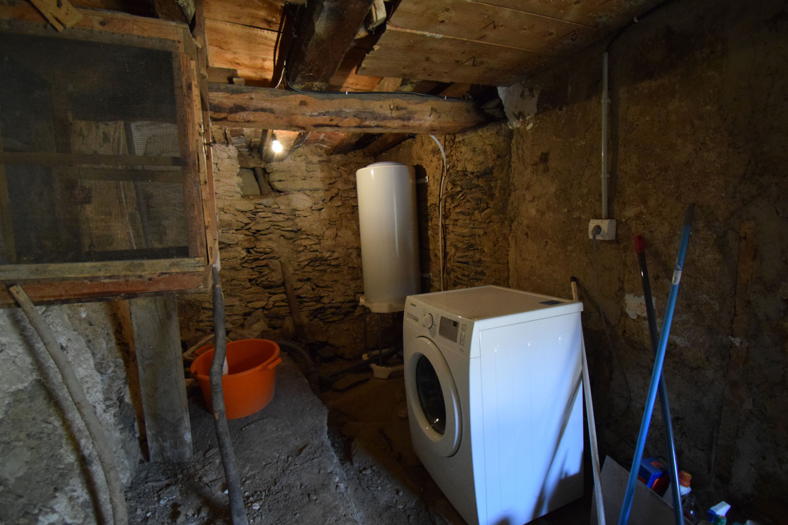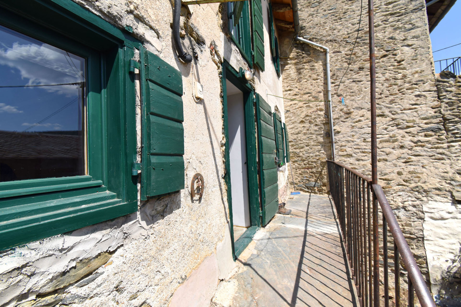 Maison de village et son annexe, avec patio central, exposé plein sud; L'annexe en l'état offre env. 35m2 de plancher à aménager selon ses envies; la bâtisse principale quant à elle a déja vue de nombreux travaux de rénovation entrepris, isolation des murs et plaques platre (sauf RDC), fenêtres double vitrage, électricité, plomberie, couverture ardoises, plancher bois sur poutres lamellé collé/parquet flottant sur les étages supérieurs; Elle se compose d'une cave(à l'état brut) en RDC avec wc et buanderie, ainsi qu'un espace cellier, au 1er niveau, accès par balcon, salle de séjour et cuisine ouverte semi équipée sur env . 31 m2 de plancher, au 2ième niveau, grande chambre et salle de douche, puis dans les combles mansardés, environ 31 m2 de plancher pour seconde chambre avec labavo; Conduit de cheminée/poele pré-installé, grand velux en toiture, patio trés agréable car très bien exposé en plein sud, accés à la maison en impasse.