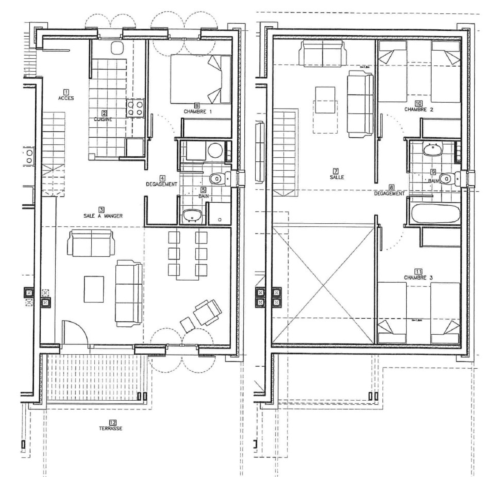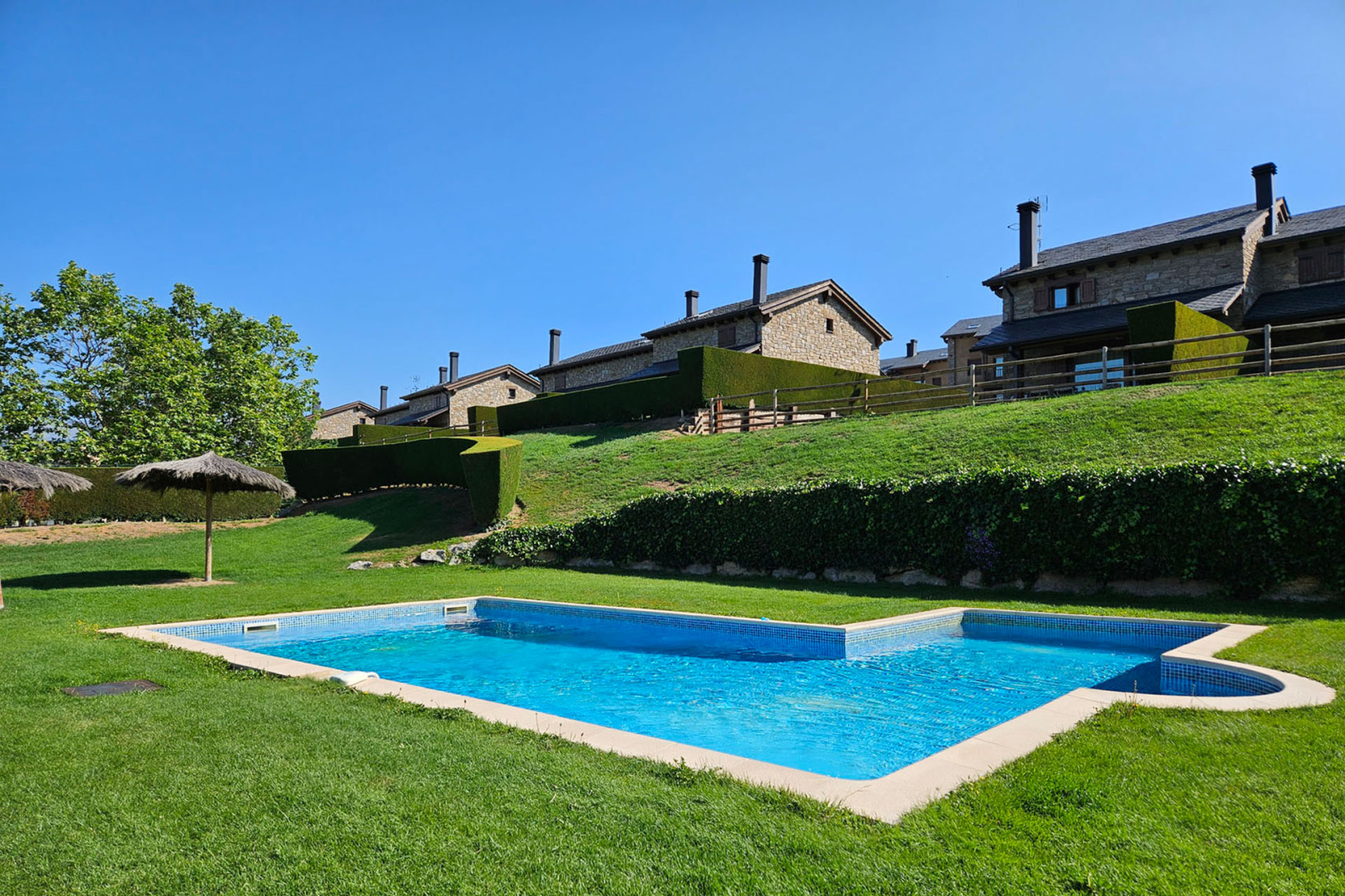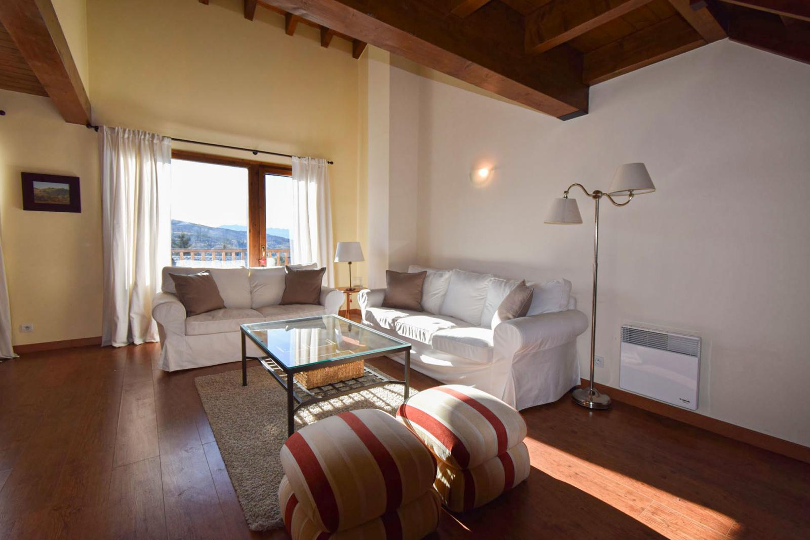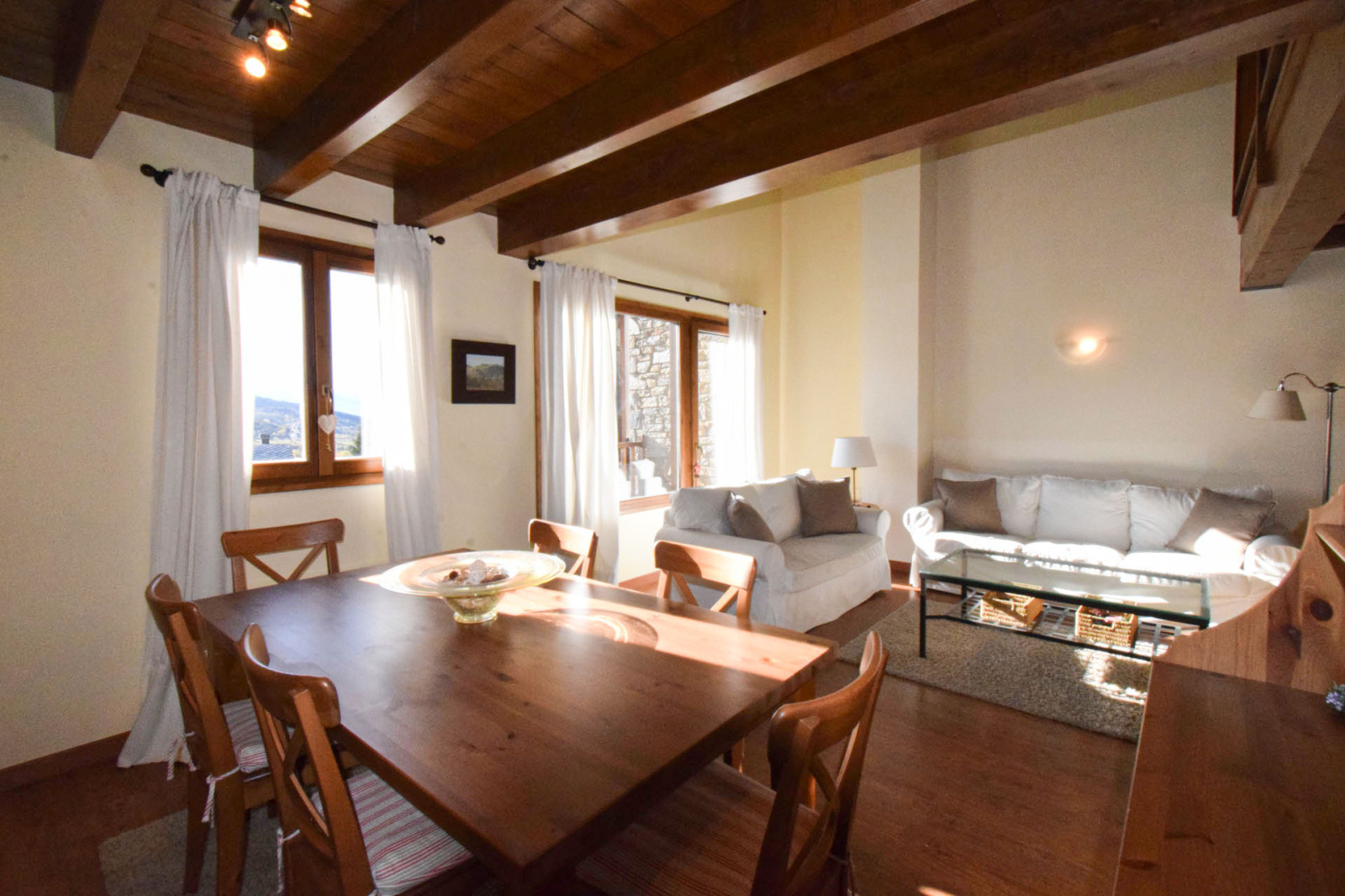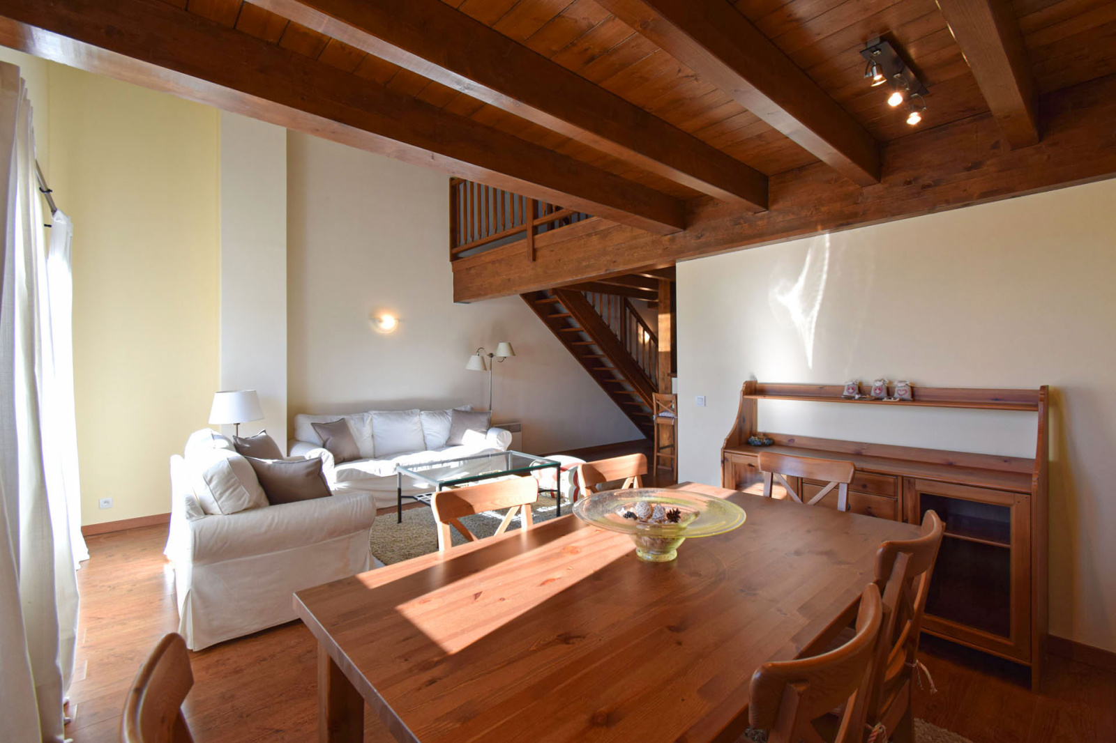 Centre village de Osséja, grand duplex moderne, spacieux, lumineux, très confortable à vivre, en 3 faces; Cet appartement offre au 1er niveau une entrée sur une cuisine séparée équipée et passe plat, une grande salle de séjour très ensoleillée et lumineuse (cheminée possible) avec terrasse en plein sud offrant une très belle vue panoramique, un dégagement avec placard mène à une salle de douche avec wc suivi d'une chambre parentale et son placard aménagé; Au niveau supérieur grande mezzanine de 17m2 suplombant le salon, dégagement sur 2 chambres et salle de bain avec wc. L'appartement dispose également de 2 places de stationnements dans garage en sous sol. Finitions et prestations qualitatives avec espaces verts, piscine, résidence sécurisée, à proximité de toutes commodités. Vendu comme sur photo dans un état proche du neuf.