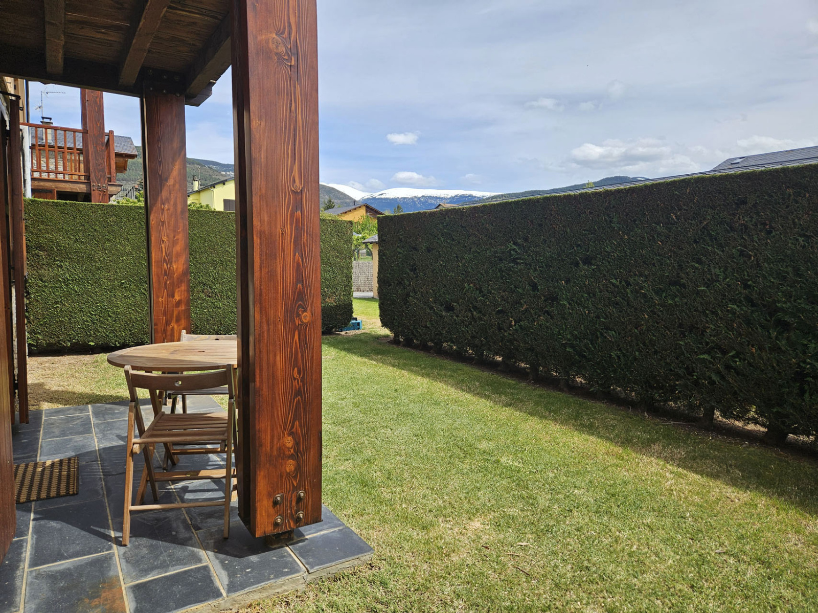 Osséja, proximité centre village, dans petite copropriété de 14 lots, appartement en RDC contemporain; Salle de séjour avec cheminée insert ouvrant sur jardin de 40m2 expo sud, cuisine américaine toute équipée, 1 chambre double avec placard aménagé, 1 chambre simple, salle de bain avec wc; Copropriété au calme avec espaces verts et piscine. Stationnement extérieur privé et garage de 12 m2.Vendu en l'état.