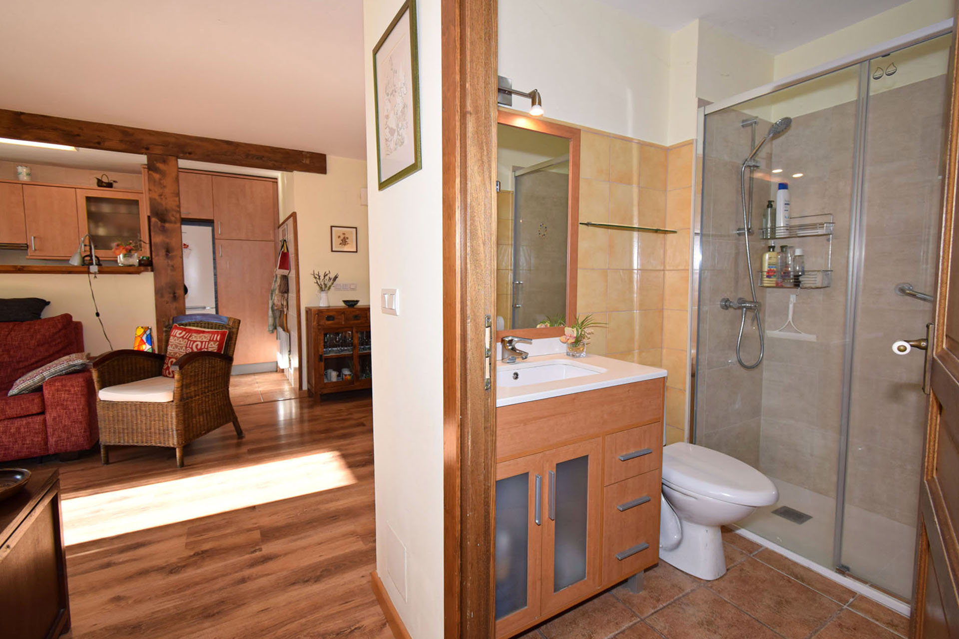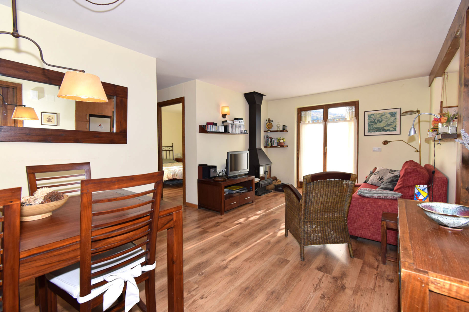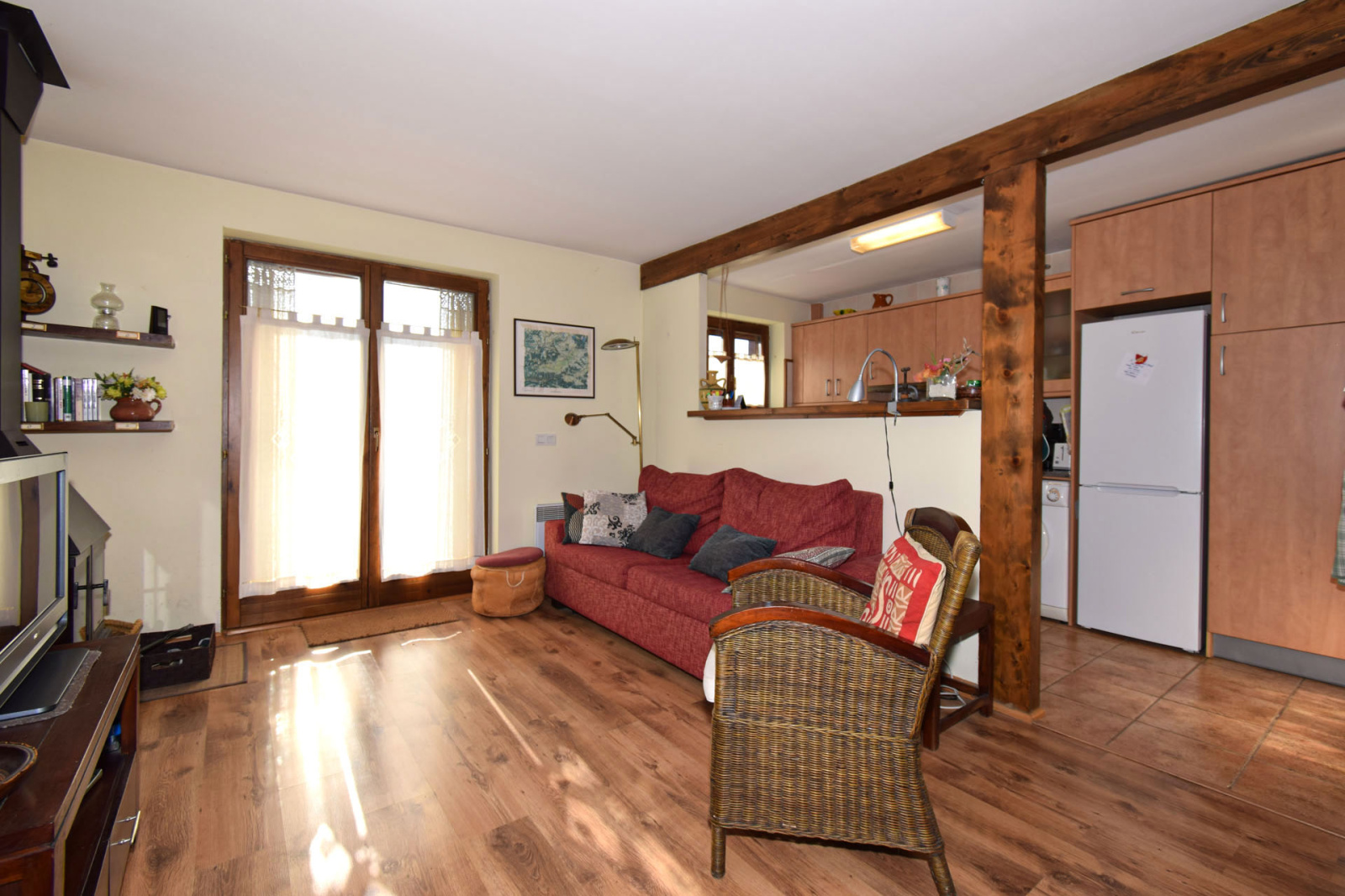 Il offre deux chambres avec placards aménagés, une salle de douche moderne, ainsi qu’un bel espace de vie lumineux avec cuisine américaine entièrement équipée et cheminée à insert bois, parfait pour des moments conviviaux en toute saison.