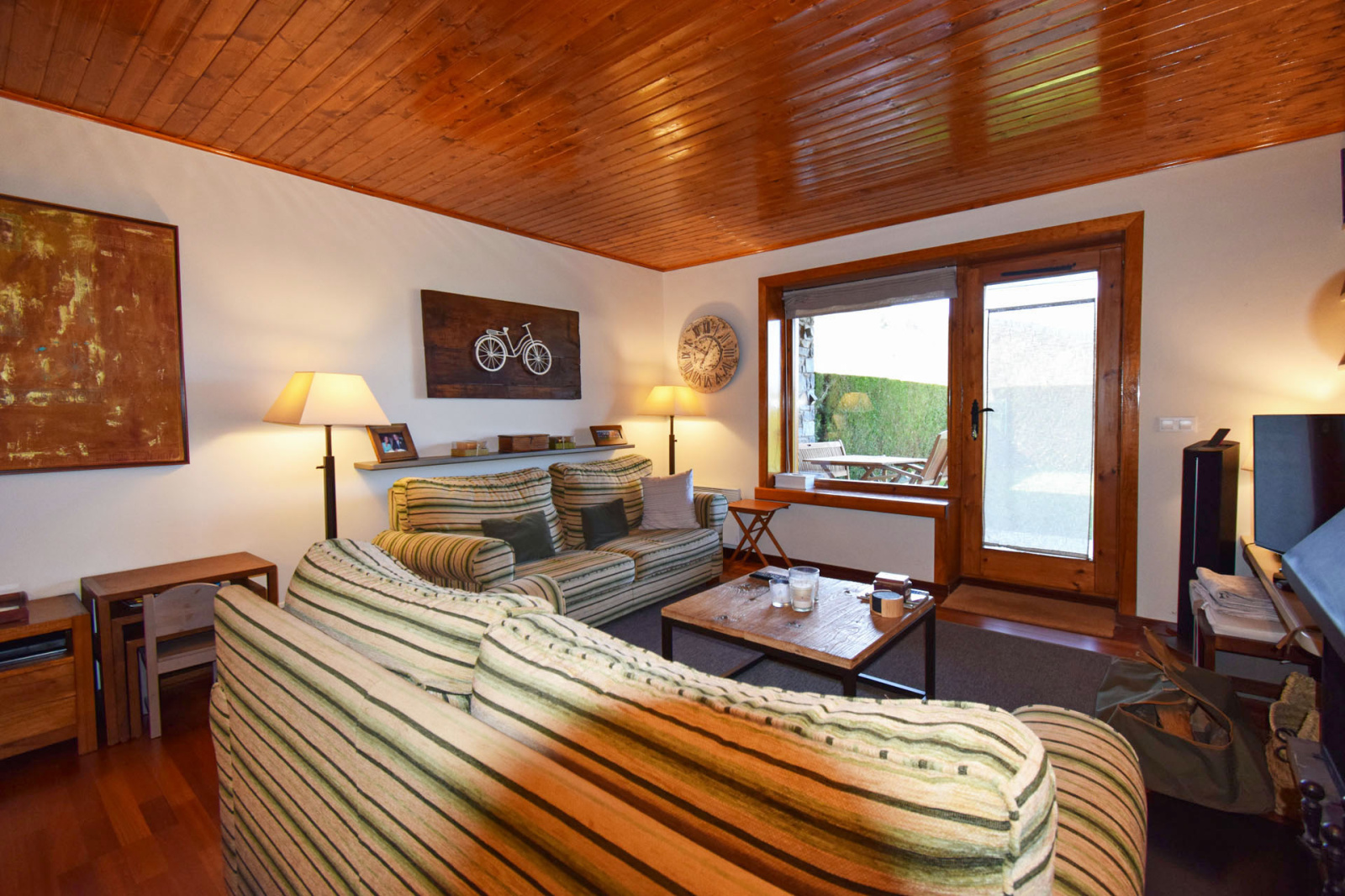 Osséja, secteur du lac, appartement standing 4 pièces en RDC comprenant, spacieux hall d'entrée avec vestiaire, séjour et salle à manger de 25m2, cheminée bois, ouvrant sur terrasse couverte et jardin privatif de 65 m2 en expo sud ouest, cuisine américaine équipée avec passe plat, couloir de dégagement sur 1 suite parentale avec placards aménagés et salle de bain/wc, 2 chambres doubles avec placards aménagés, 1 salle de douche/wc. Garage privatif type box de 25 m2, 1 place de stationnement extérieure privative. Copropriété avec piscine, espaces vert, très agréable, finitions qualitatives; A quelques pas du lac d'Osséja et centre village à pied.Très belle opportunité à saisir.