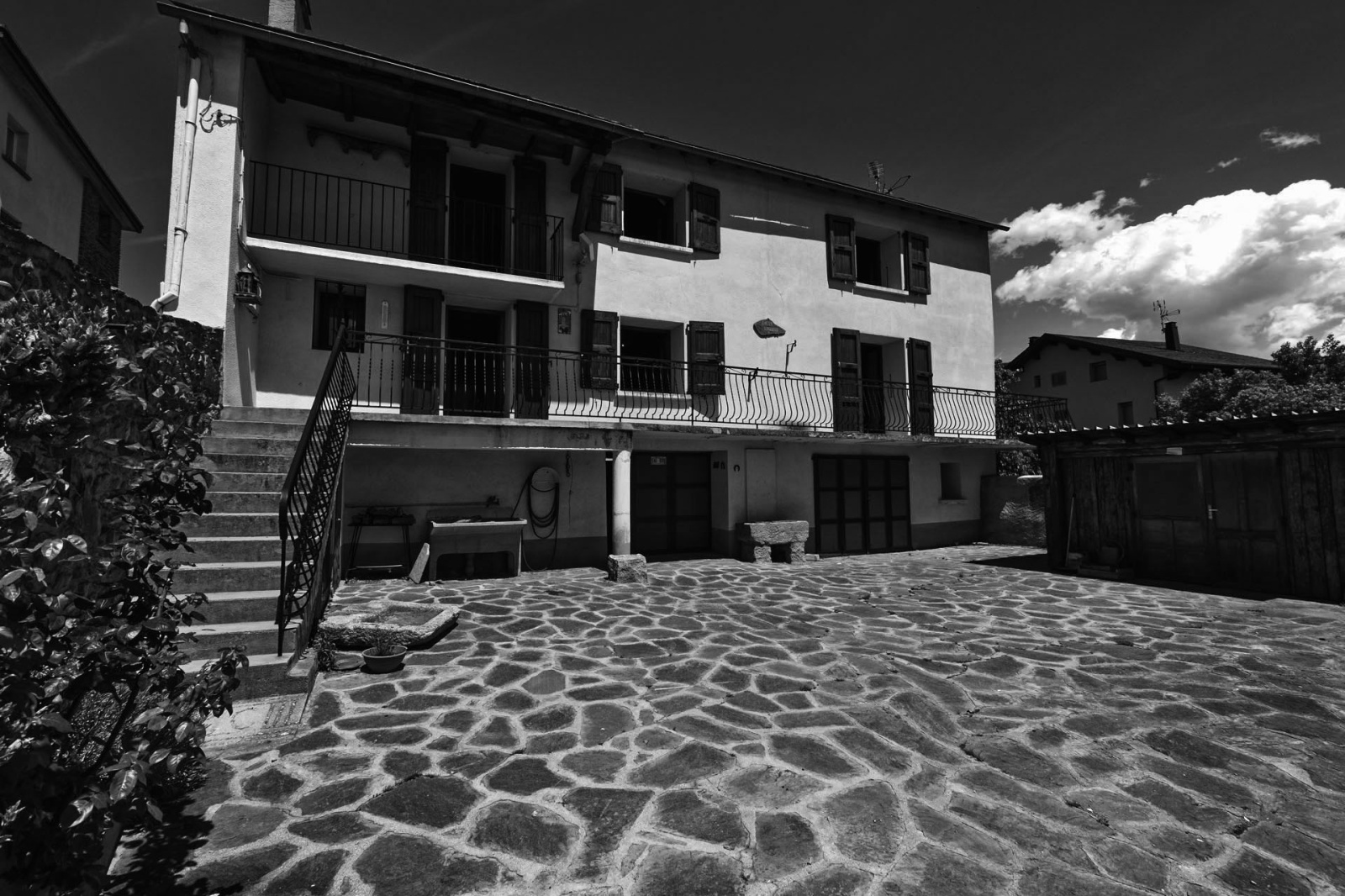 Maison traditionnelle 4 faces sur 585m2 de terrain cloturé, dans un secteur paisible et recherché du centre village. Atelier et garage de 55m2 en rez de chaussée, accès par un balcon au 1er étage, entrée sur cuisine/arrière cuisine, salle à manger, salon chaleureux avec cheminée insert bois; A l'étage au dessus de la cuisine, dégagement sur 2 chambres avec placards exposées en sud ouest, l'une avec balcon privatif, salle de bains et wc séparé; A l'étage au dessus du salon, une grande chambre expo sud ouest avec salle de bains attenante et wc séparé. Secteur très agréable, sans nuisances, à pied du centre village, belle exposition et splendide patio en ardoises naturelles d'environ 120m2, jardin potager fertile sur 325m2 et abri, chauffage mixte avec radiateurs électriques et chaudière fioul, cumulus pour l'eau chaude, combles accesibles et charpente traditionnelle couverte de lauzes de pays, à voir....