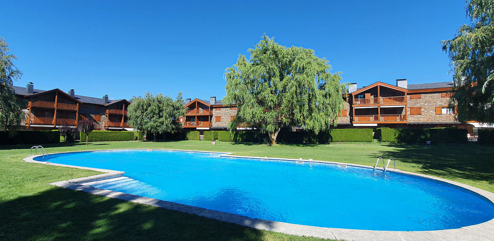Palau de Cerdagne, résidence "Blauverd" dont nous sommes syndic, appartement en 1er étage comprenant cuisine équipée semi ouverte, salle de séjour avec cheminée bois et terrasse en exposition ouest, belle vue sur la piscine, une chambre double et placard, mezzanine aménagée en partie haute pour espace couchage ou bureau, une autre chambre double avec placard, une salle de bain avec wc; En pied de bâtiment, 1 place de stationnement extérieure et 1 garage type box de 16m2; Ensemble résidentiel très agréable de 80 lots, dans un cadre très naturel. Bien vendu avec meubles/électroménager.