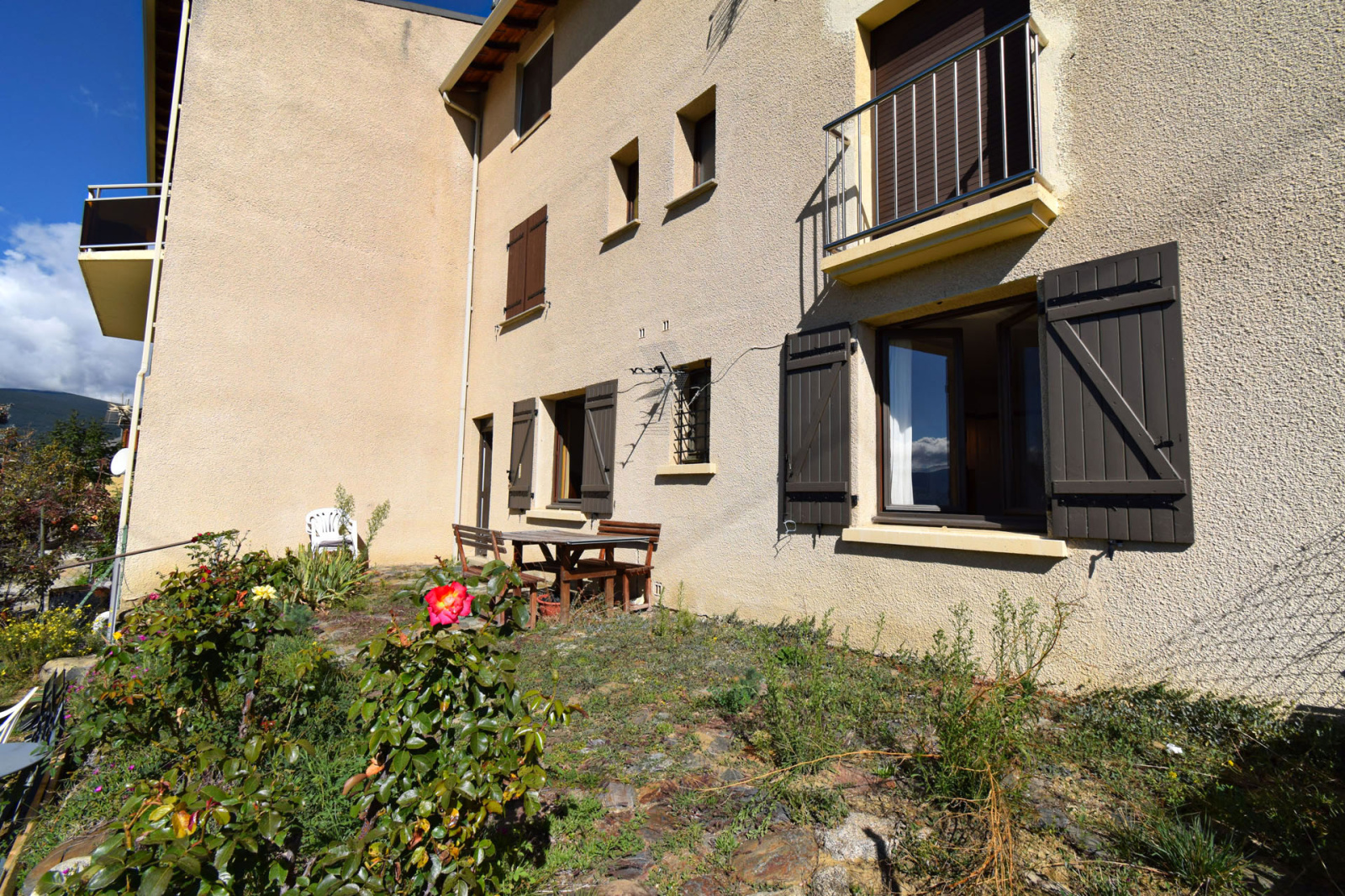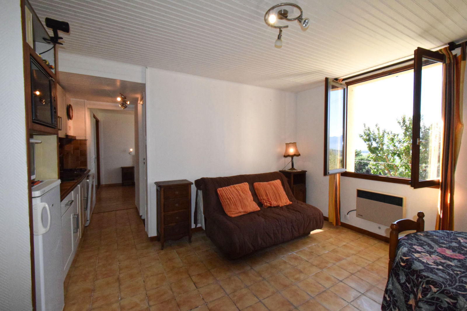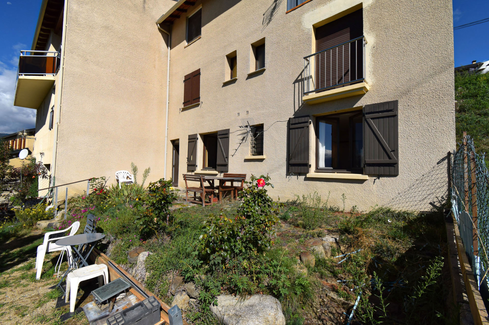 Enveitg, dans petit collectif édifié en 1989 de 3 logements, appartement en rez de jardin, comprenant entrée sur salle de séjour avec coin cuisine équipé, une salle de douches avec wc, une chambre double avec grand placard; Accès à l'extérieur sur terrasse privative d'env 30m2, l'ensemble bien entretenu, avec une belle exposition au sud; Pas de syndic, vendu en l'état comme sur photos, ideal pied à terre à moindre frais, investissement locatif.