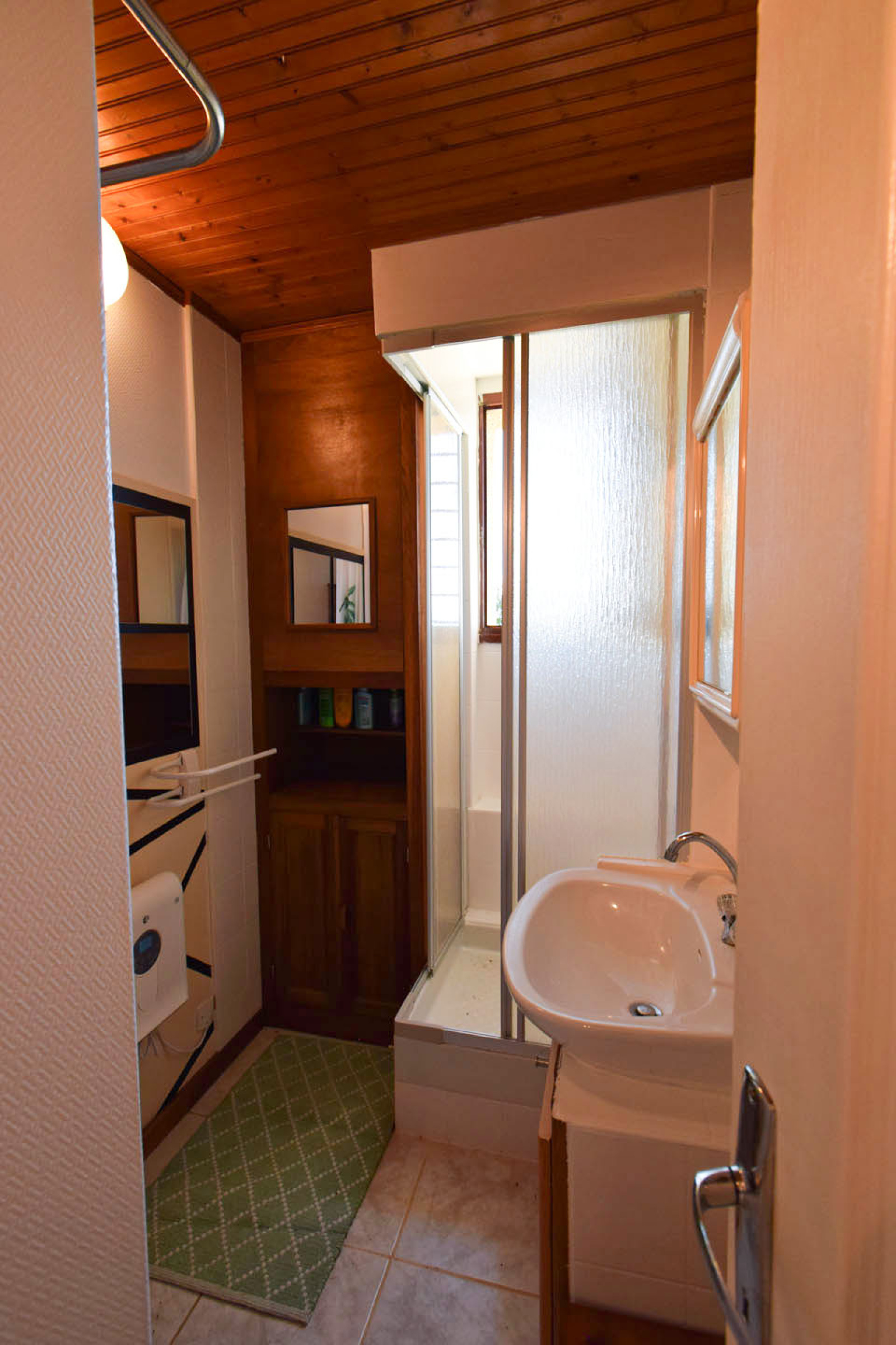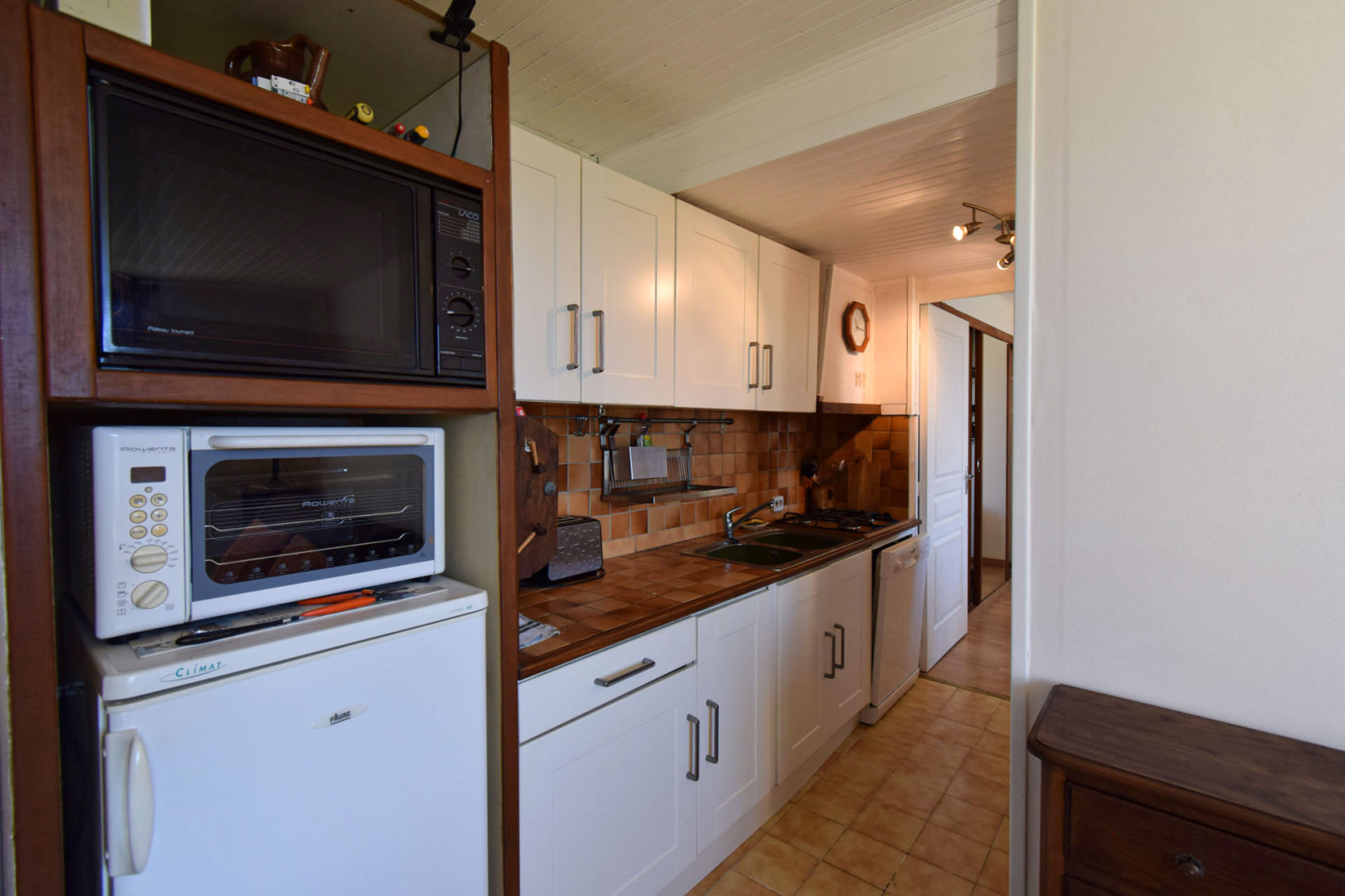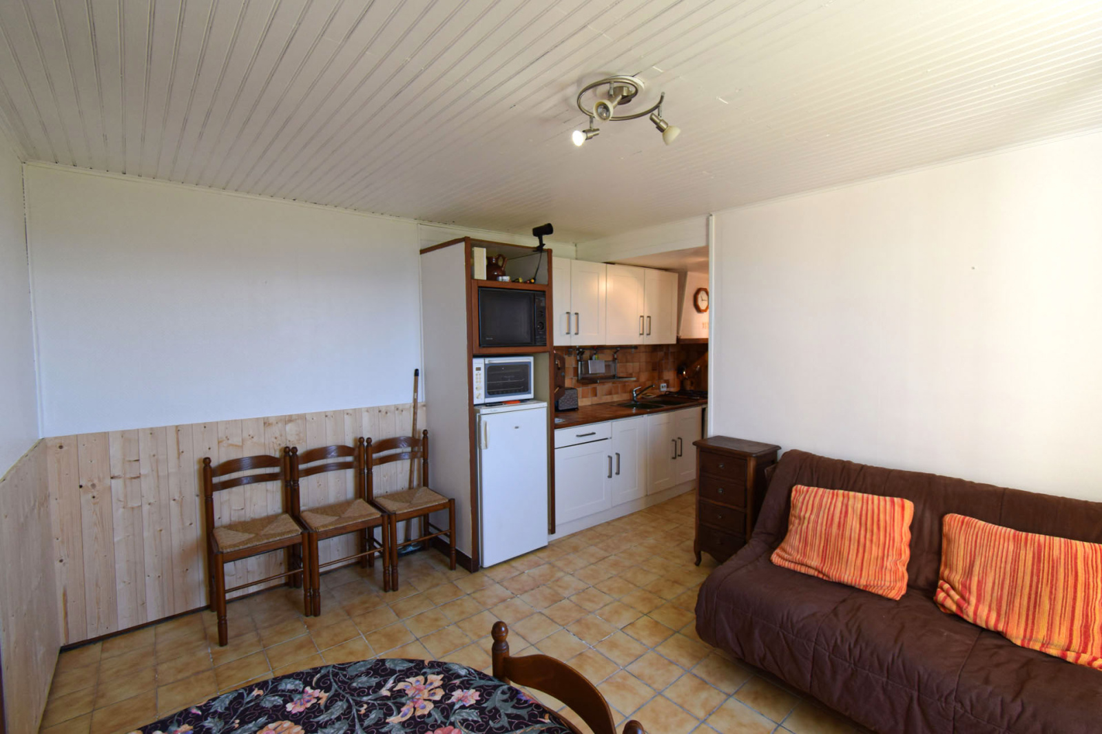 Enveitg, dans petit collectif édifié en 1989 de 3 logements, appartement en rez de jardin, comprenant entrée sur salle de séjour avec coin cuisine équipé, une salle de douches avec wc, une chambre double avec grand placard; Accès à l'extérieur sur terrasse privative d'env 30m2, l'ensemble bien entretenu, avec une belle exposition au sud; Pas de syndic, vendu en l'état comme sur photos, ideal pied à terre à moindre frais, investissement locatif.