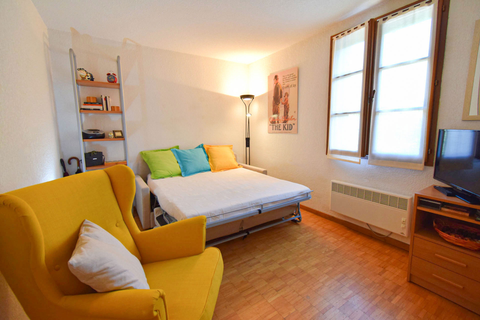 Enveitg, plaisant studio en 3ième étage avec ascenseur, en très bon état, comprenant salle de bains avec wc, pièce à vivre avec canapé lit de bonne facture et cuisine équipée (plaque vitro, micro-onde, lave vaisselle, frigo congélateur) avec 2 grands placards aménagès; 1 place de stationnement privative et casier à ski; Résidence sécurisée avec conciergerie H24, salle wifi, buanderie(lave linge/sèche linge), salles de jeux et détente, barbecue, ping pong, billard, sauna, gymnase, grand parc arboré très agréable, piscine. Vendu avec mobilier et électroménager.