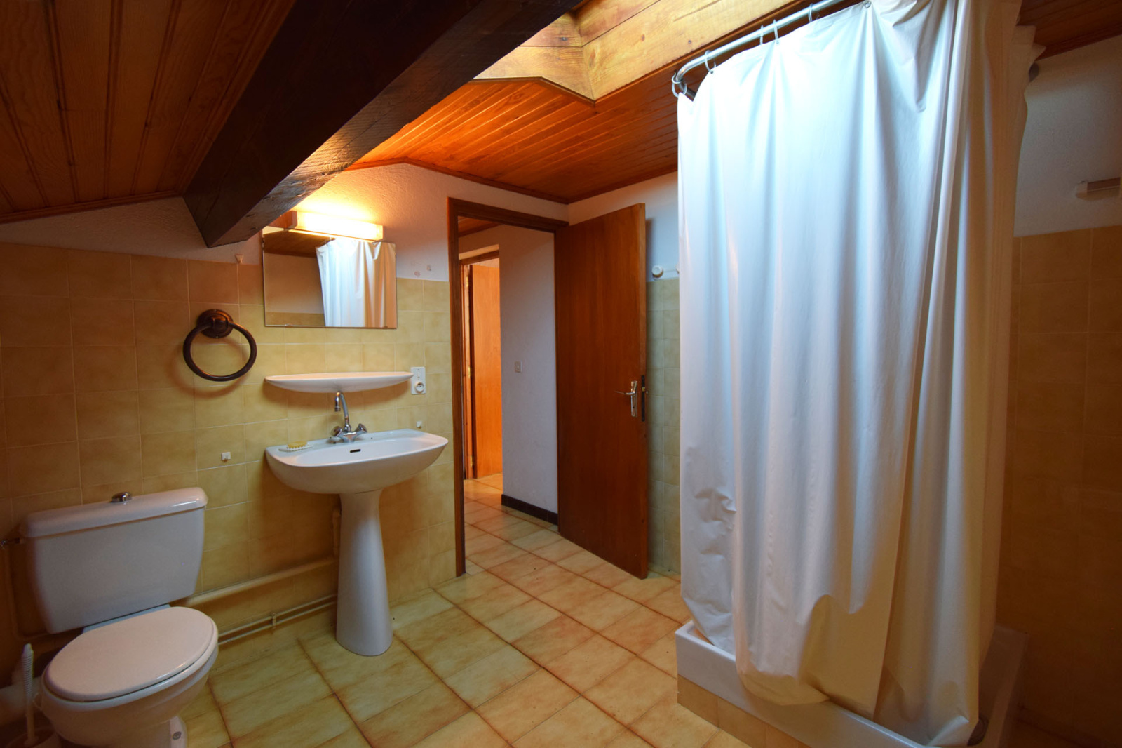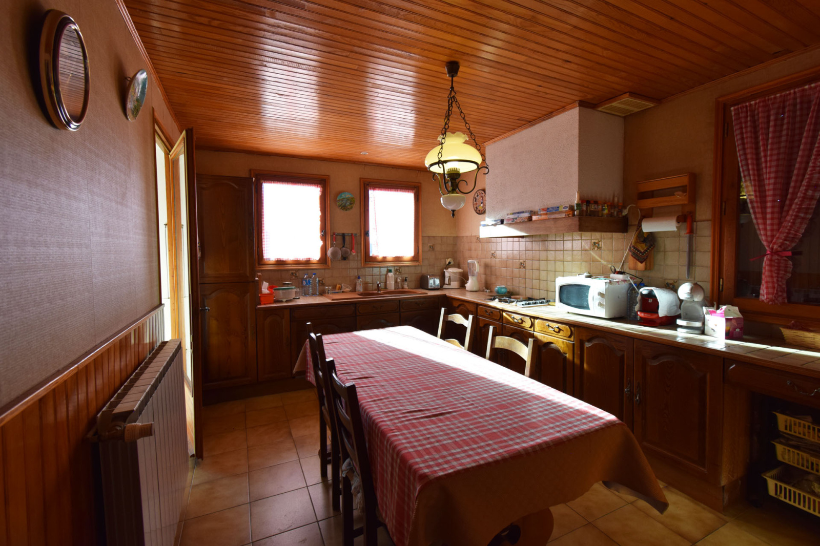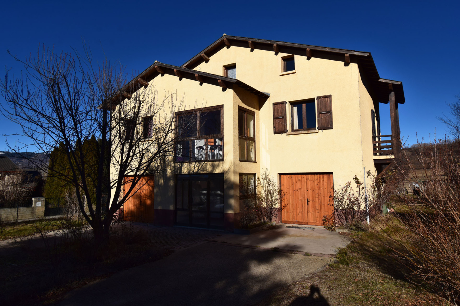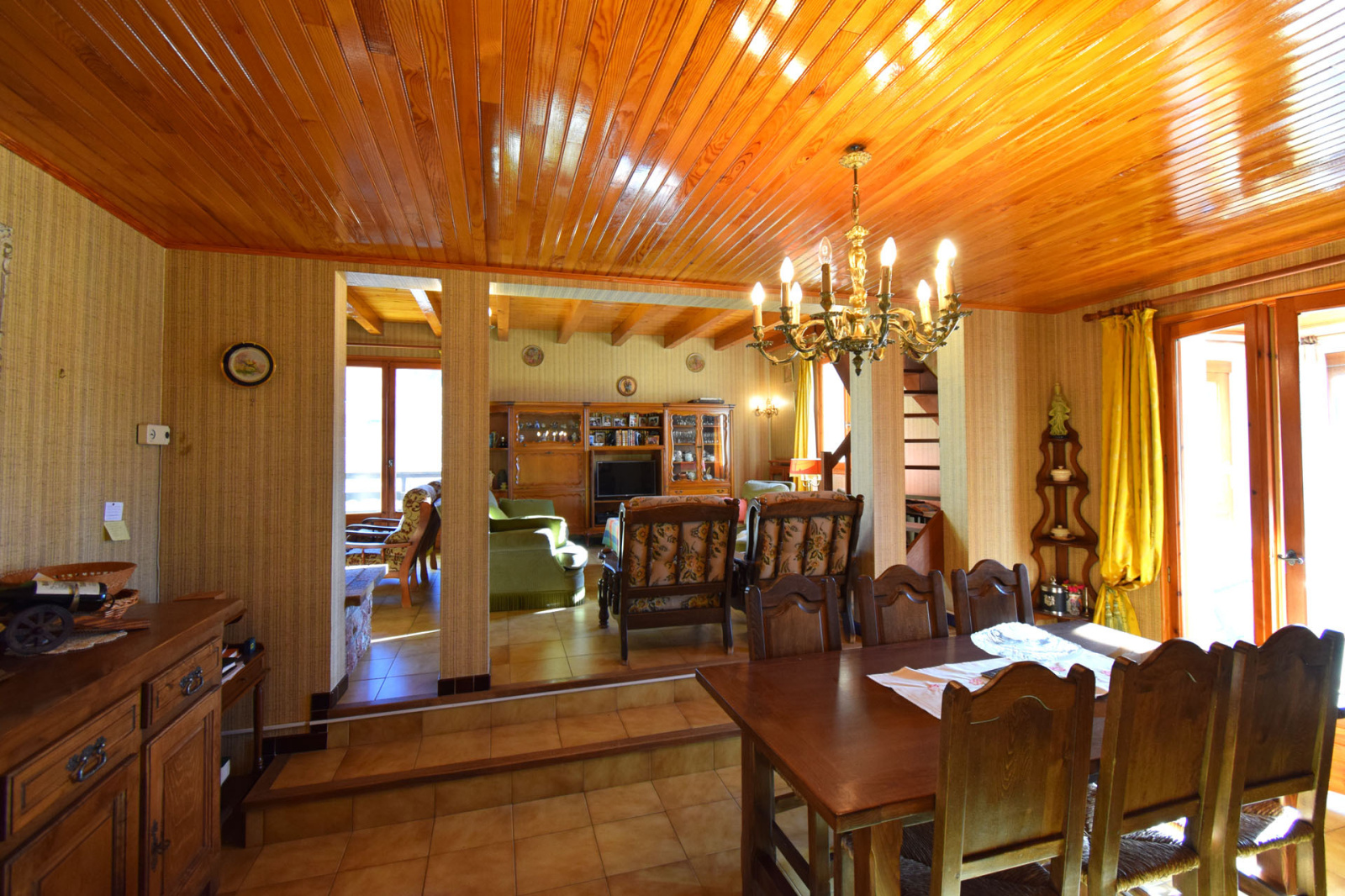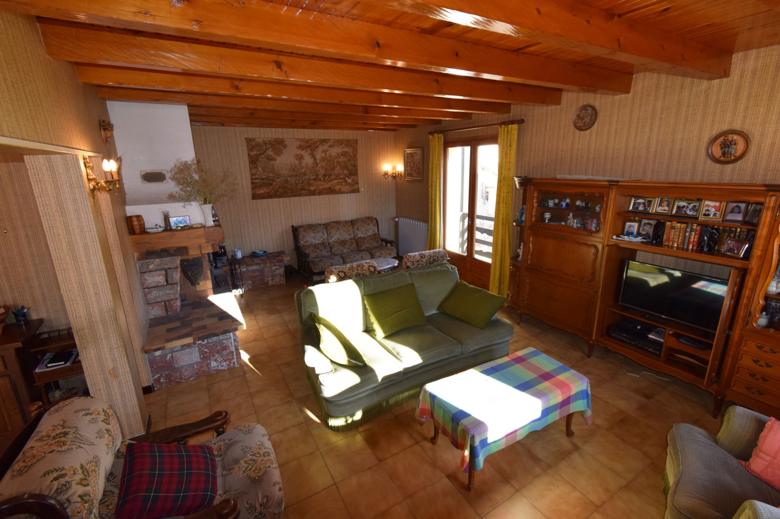 Bien située sur les hauts du village de Err, en secteur pavillonnaire, sans nuisances et avec tous les services/commerces de proximité, cette maison édifiée dans les années 80, sur son terrain clôturé et arboré de 900m2, comblera votre recherche de résidence principale et/ou de rendement locatif. Elle se présente en RDC, suivant un spacieux hall d'entrée et deux grands garage de 17 et 30m2, l'un accueillant le système de chauffage central au fioul, parfaitement entretenu et fonctionnel; De ce hall, ou de façon indépendante par le jardin extérieur, accès à un appartement de 2 chambres doubles avec placards, belle salle de séjour de 25m2 avec cuisine américaine, salle de douches avec wc, le tout d'une superficie habitable d'env. 53m2; Au 1er étage, nous trouvons l'unité de vie principale sur env. 120m2 habitables, comprenant une cuisine dinatoire de 15m2 ouvrant sur une loggia en expo sud-ouest, une salle à manger et salon de 45m2, avec cheminée insert bois, ouvrant également sur la loggia, et un balcon, 3 grandes chambres doubles avec placards, wc, et salle de douches. L'ensemble est bien lumineux et les point de vues sont remarquables. Nous accédons au 2ième et dernier niveau, sous toiture, pour découvrir un dernier appartement aménagé de 3 chambres, salle de séjour de 25m2, grande cuisine, salle de douches, l'ensemble de superficie habitable d'env. 63m2 et 97m2 construits au sol compte tenu de l'espace en soupente. Nous parlons donc bien d'env. 250m2 habitables au total, et quelques 380m2 de plancher construit avec les garages, d'un réel potentiel, à remettre au goût du jour, mais qui reste donc un produit rare. L'état général intérieur\extérieur est correct, comme toutes ces constructions traditionnelles de ces années là, c'est du solide, sans anomalies structurelles, double vitrage, la couverture en Eternit devrait mériter un effort de rénovation. Vue le bon rapport qualité\prix, contactez nous rapidement !