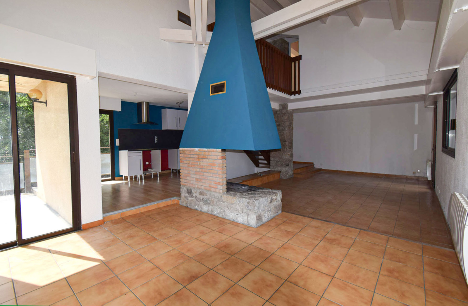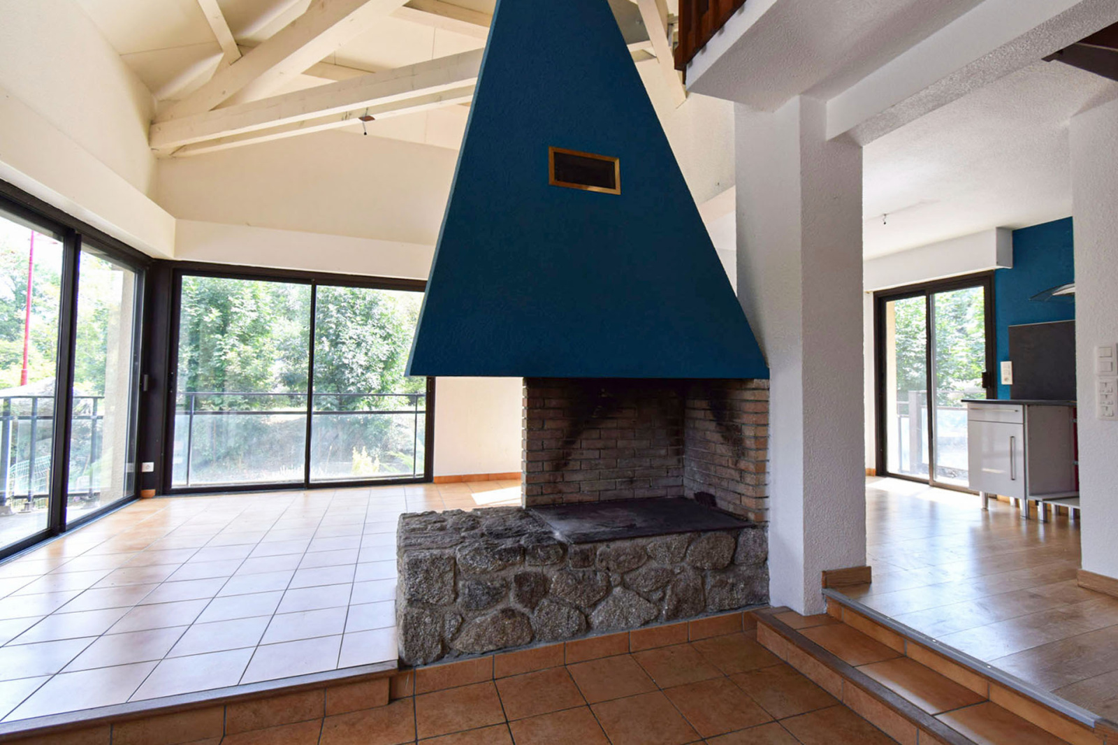 Située sur le pittoresque hameau d'Yravals, cette maison de style unique est implantée sur une parcelle de 474m2 cloturée et arborée.Edifiée dans les années 75, elle a conservé son aspect moderne et atypique et propose de nombreux espaces pour toutes commodités.L'accès du hall d'entrée avec placards intégrés en RDC nous amène au 1er étage sur une spacieuce pièce à vivre de plus de 50m2, avec une cuisine ouverte et fonctionnelle sur la salle à manger, une cheminée centrale faisant l'interface avec le salon, et l'ensemble se prolongeant sur les extérieurs par une belle terrasse de 10m2 exposée plein sud et balcon attenant à la cuisine; Cet espace reste baigné de lumière de part les grandes baies vitrées avec stores motorisés, et la hauteur généreuse sous toiture assure un caractère indéniable; Sur ce niveau également un wc séparé, placard, et une salle de bains; Au 2 ième étage, nous trouvons 3 chambres dont une suite parentale avec sa salle de douche récemment rénovée. Pour l'aspect pratique, en rez de chaussée, un grand garage et espace de rangement ou atelier, wc, porte de service vers le jardin, et une dernière chambre d'appoint ouvrant sur le jardin.Cette maison unique combine harmonieusement espaces de vie confortables et détails architecturaux distinctifs, offrant un cadre de vie exceptionnel.Ne manquez pas cette opportunité rare sur le marché local. Contactez-nous dès aujourd'hui pour organiser une visite!